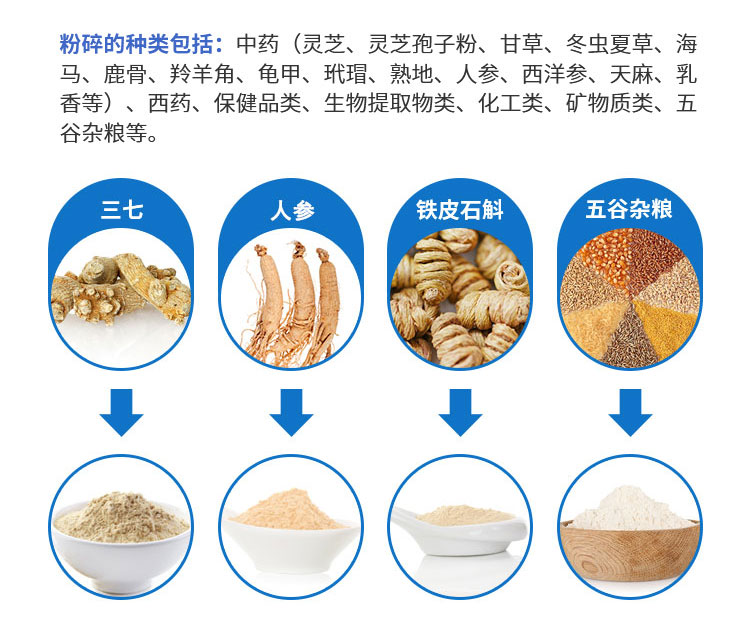 2.易拆卸(组装)、易清洗、易换料。可用水、压缩空气、酒精、蒸汽等清洗、消毒。■粉碎过程全密闭无粉尘溢出,充分改善作业环境,粉碎物料及其有效成份不损失。